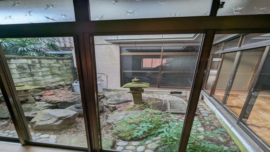 苔むした石灯籠、風情ある飛び石、そして植栽。 ガラス戸越しに眺めるその景色は、まるで隠れ家の旅館のよう。 雨の日には雨音を、晴れた日には木漏れ日を楽しむ。そんな贅沢な時間が流れています。