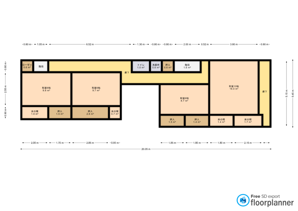 - 間取り: 6DK(1階・2階あわせて和室6部屋+ダイニング)
